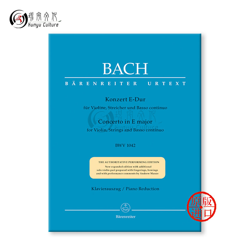 德国骑熊士原版 Concerto E大调小提琴协奏曲BWV 附钢琴伴奏 Violin 巴赫 for 进口乐谱书 1042 Bach BA5190 Major
