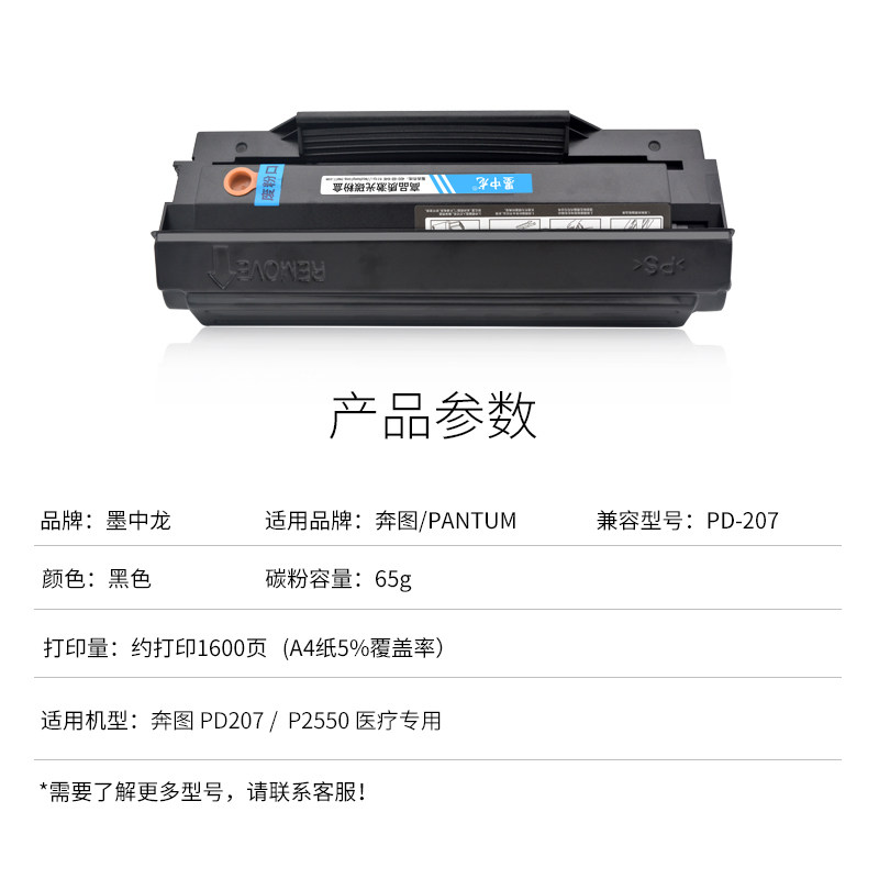 P2250激光打印机墨粉盒 医疗机专用 奔图易加粉硒鼓 奔图P2550硒鼓 墨中龙适用奔图PD207硒鼓