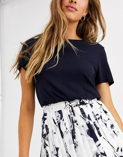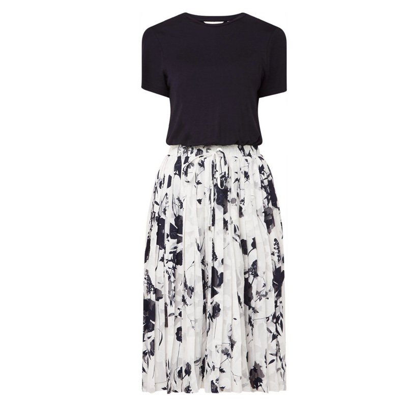 假两件T恤拼接百褶裙腰部抽绳 显瘦连衣裙短袖 2020新款 印花修身