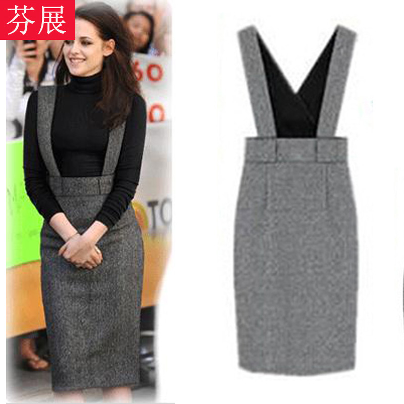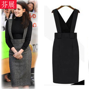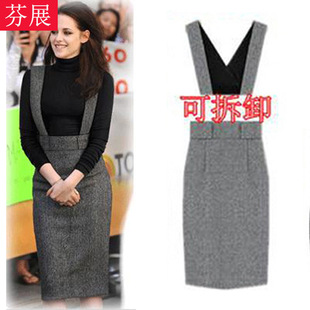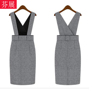 显瘦马甲连衣裙 包臀一步裙中长款 芬展秋冬新品 毛呢背带裙高腰修身