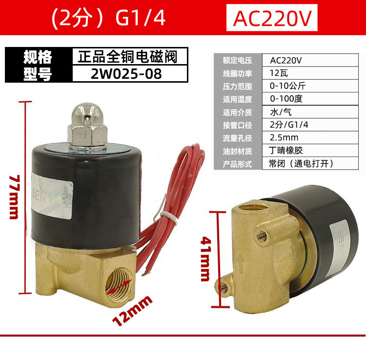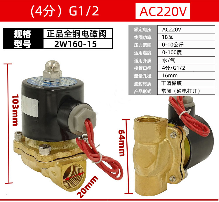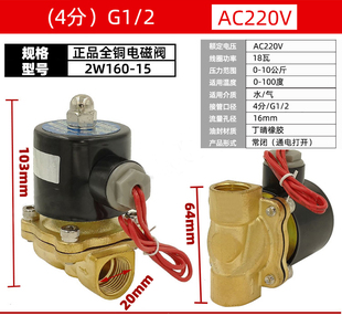 纯铜线圈常闭电磁阀水阀气阀AC220V24V 电子阀4分控制开关12V螺纹
