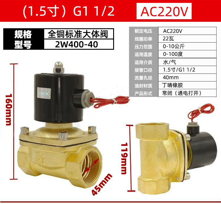 山野全铜常闭电磁阀水阀2分4分6分1寸2寸气阀水阀AC220V水开关阀