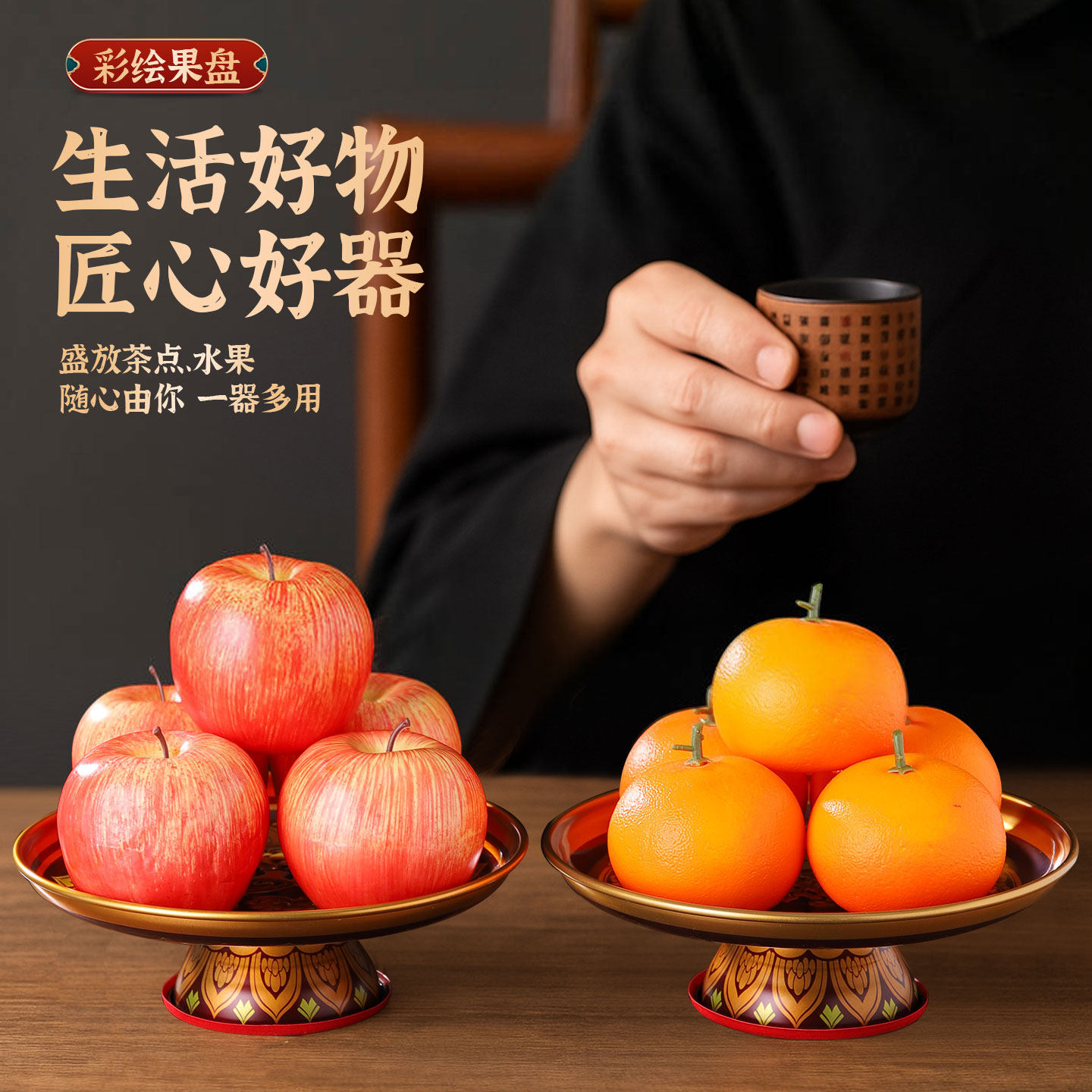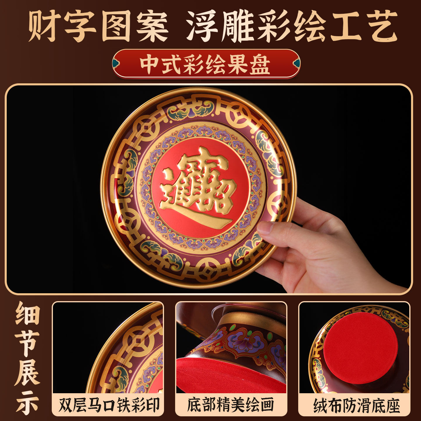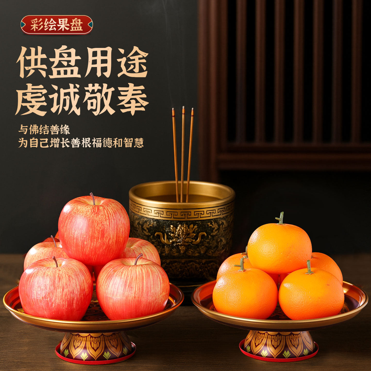 供果盘家用佛前用品财神客厅水果盘果篓琉璃八吉祥贡盘摆件