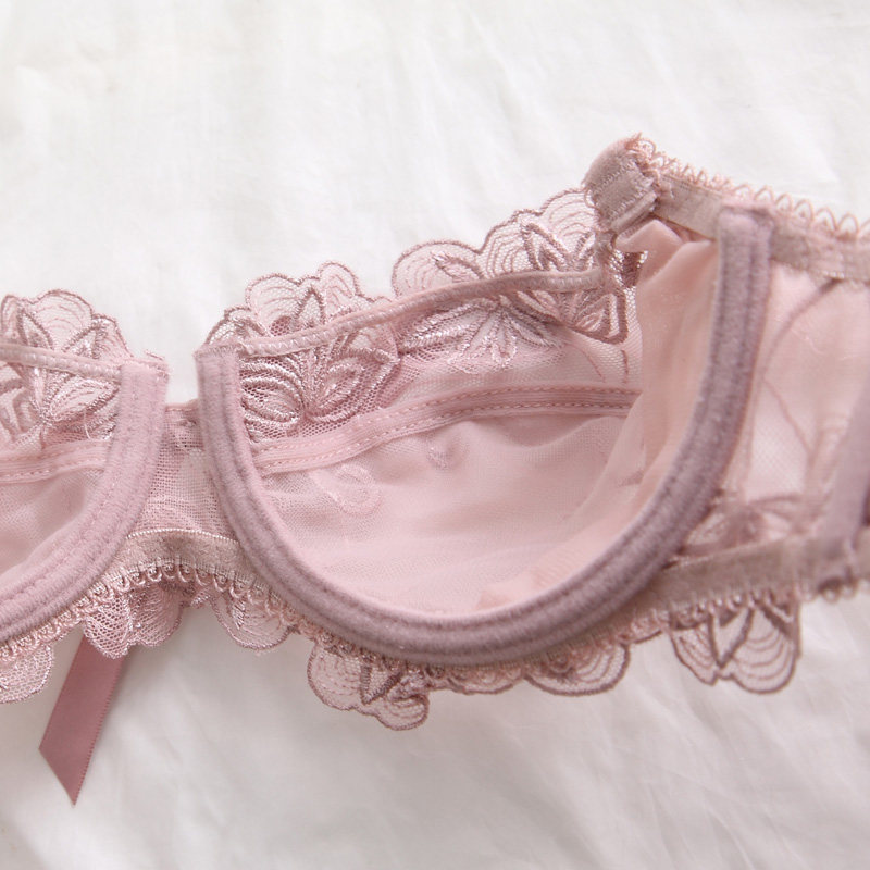 好奇蜜斯前扣内衣女聚拢小胸性感蕾丝薄文胸罩套装 美背纯欲夏法式