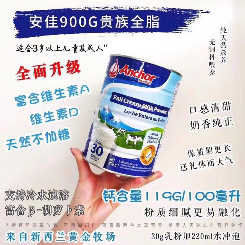 直邮6罐一拍 新西兰Anchor安佳学生老人孕妇女全脂奶粉900g