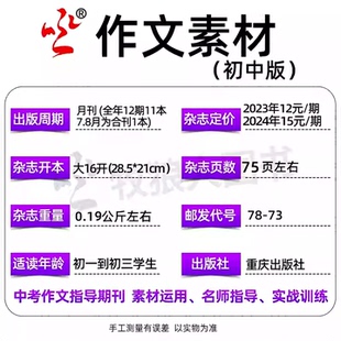 杂志2026年1月 12月 全年 2025年1 备考年度精华本中考中学生七八九年级创新作文课堂内外实用文摘过刊 半年订阅 作文素材初中版