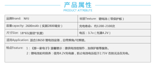 商品标签:NYJ2600mAh带焊片