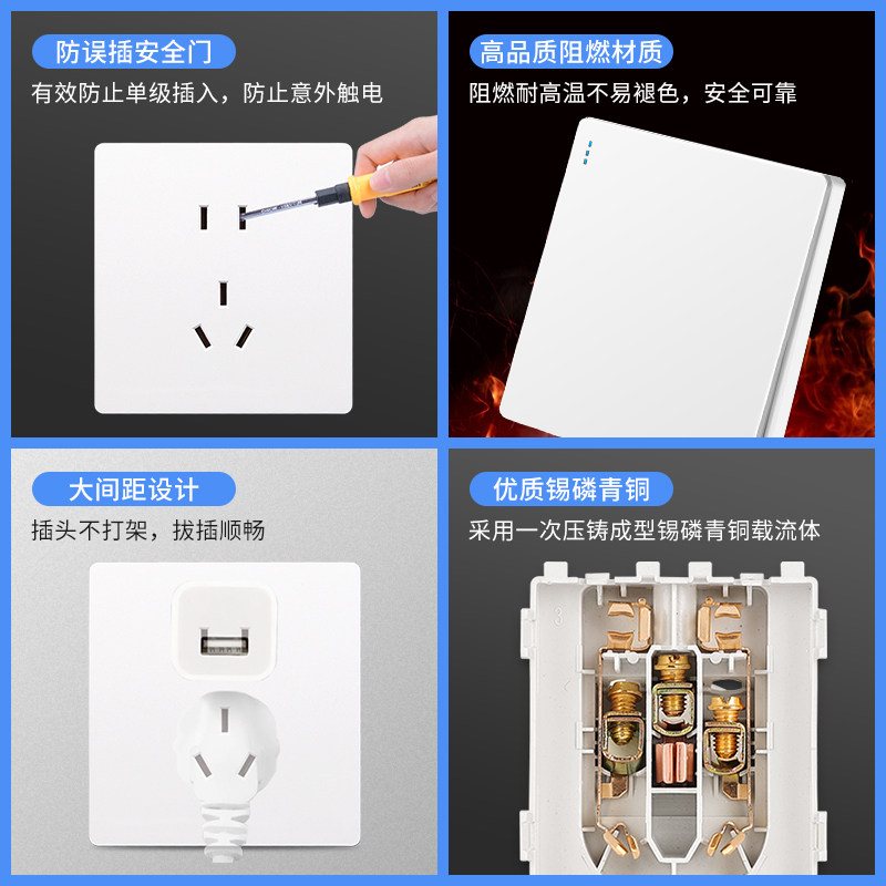 86型开关插座套餐16a五孔带USB插座面板暗装 墙壁家用雅白大板