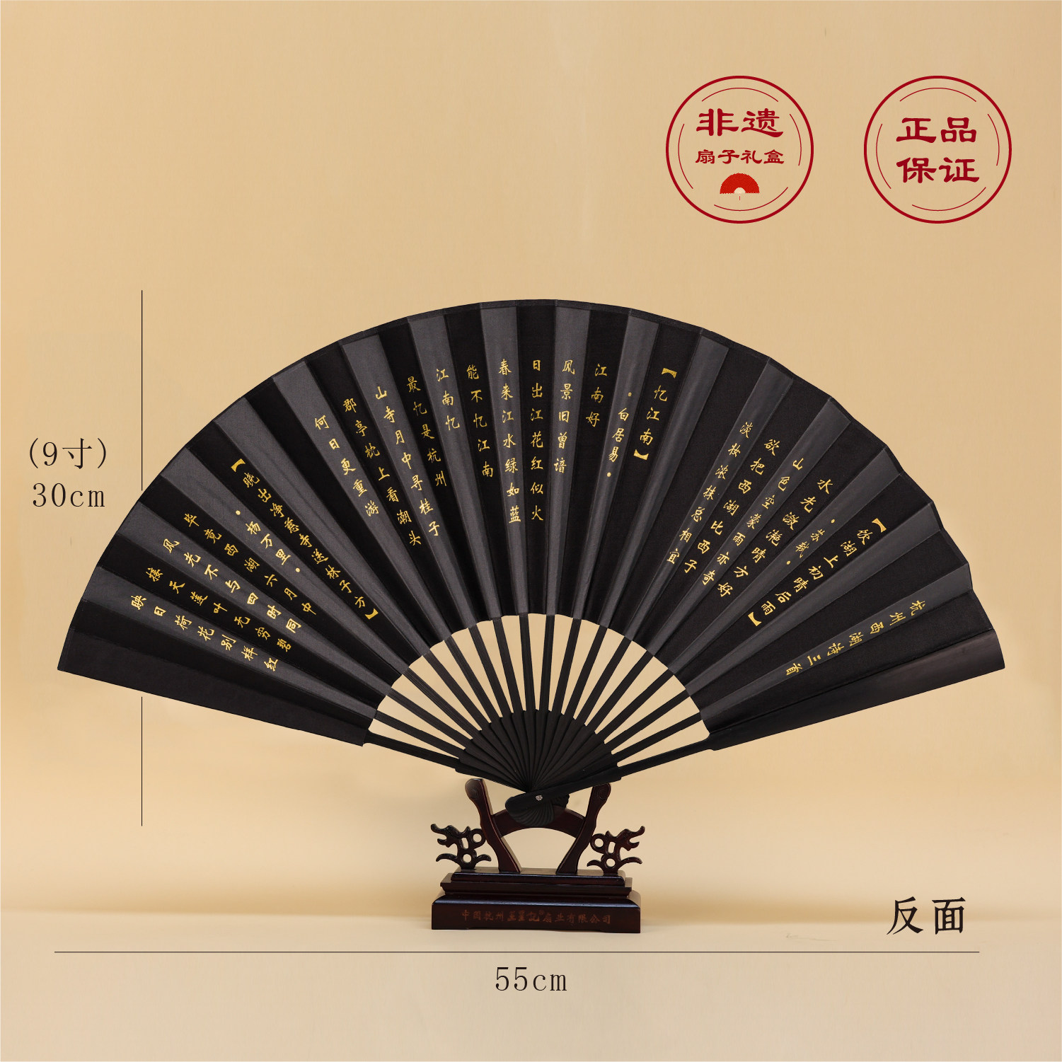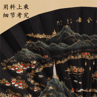 王星记扇子中国风黑色丝绸绢折扇男式 折叠扇杭州礼品 古风9寸男士