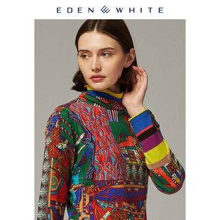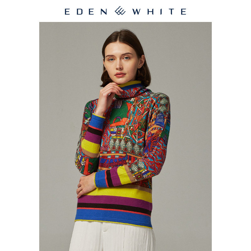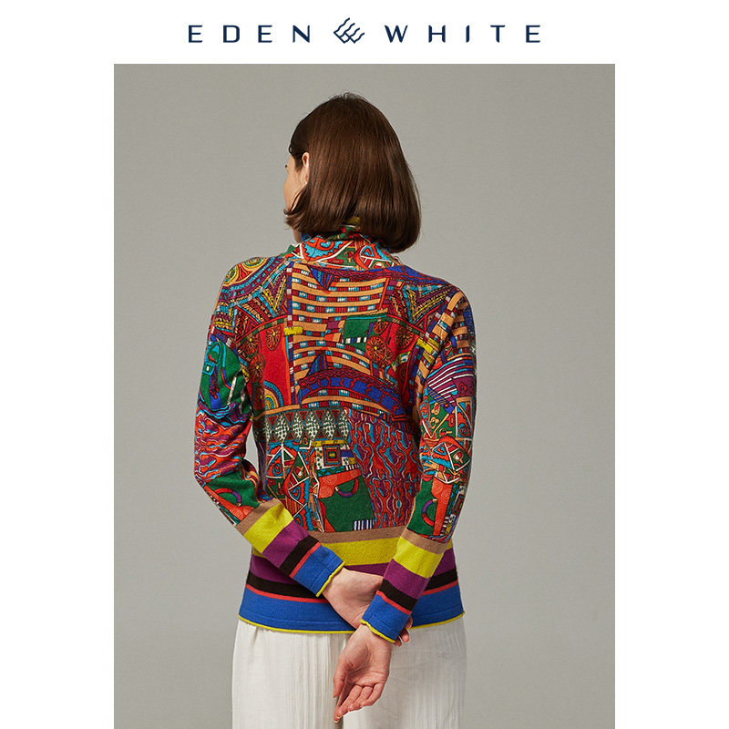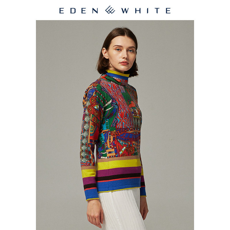 多彩印花针织衫 圣雪绒2019秋冬新品 饰主义风格 女士自由领装 羊绒衫