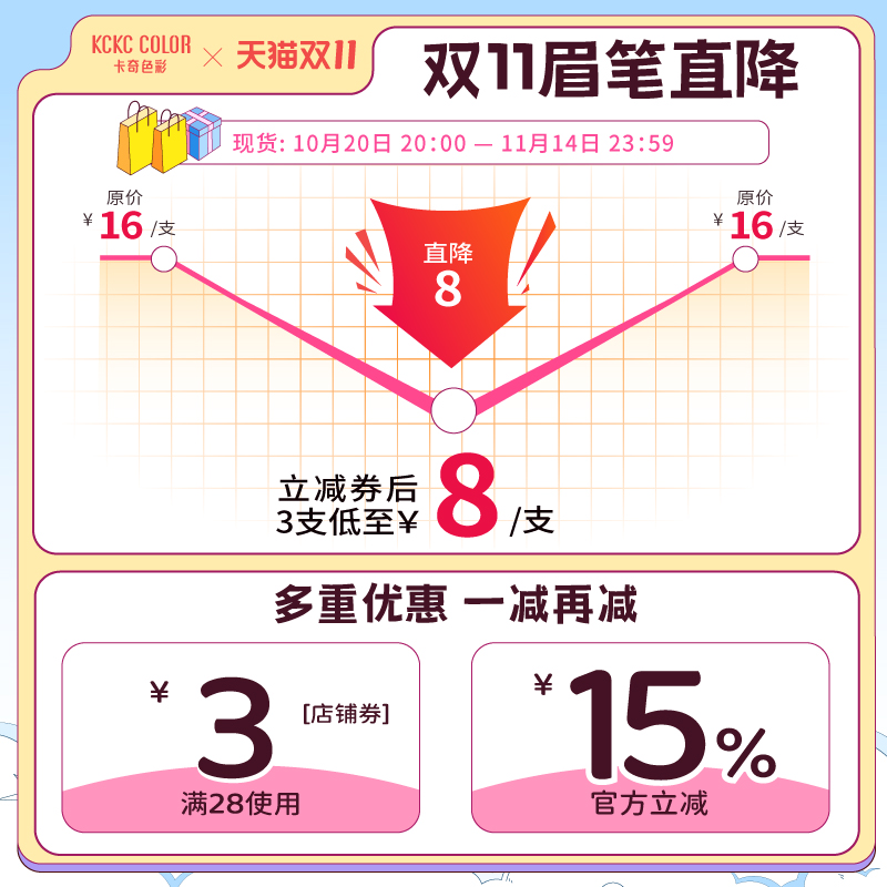 卡其卡奇色彩细芯眉笔女不脱色根根分明 6色可选 双11抢购