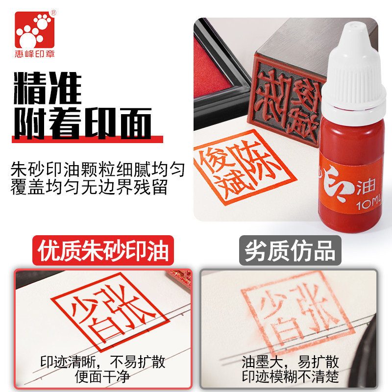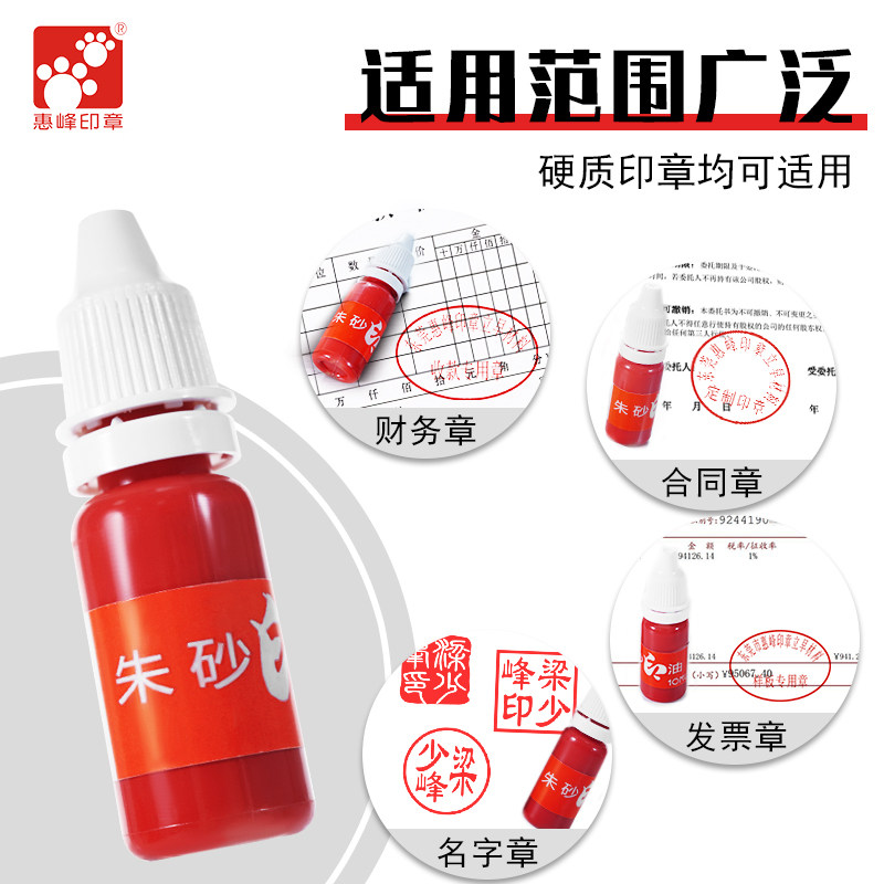 朱砂印台专用印油 持久不掉色 印泥盒添加印油补充液红色蓝色黑色10ml朱砂印油 立早纯正朱砂印油 正品
