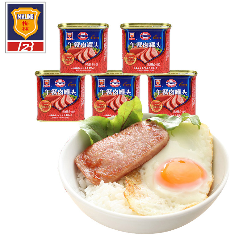 梅林精制午餐肉罐头340g 4罐户外方便速食猪肉罐头食品上海特产
