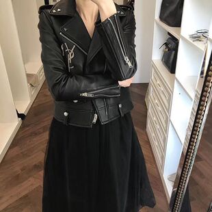 机车夹克显瘦外套韩版 2026春秋新款 修身 短款 潮 绵羊皮真皮皮衣女