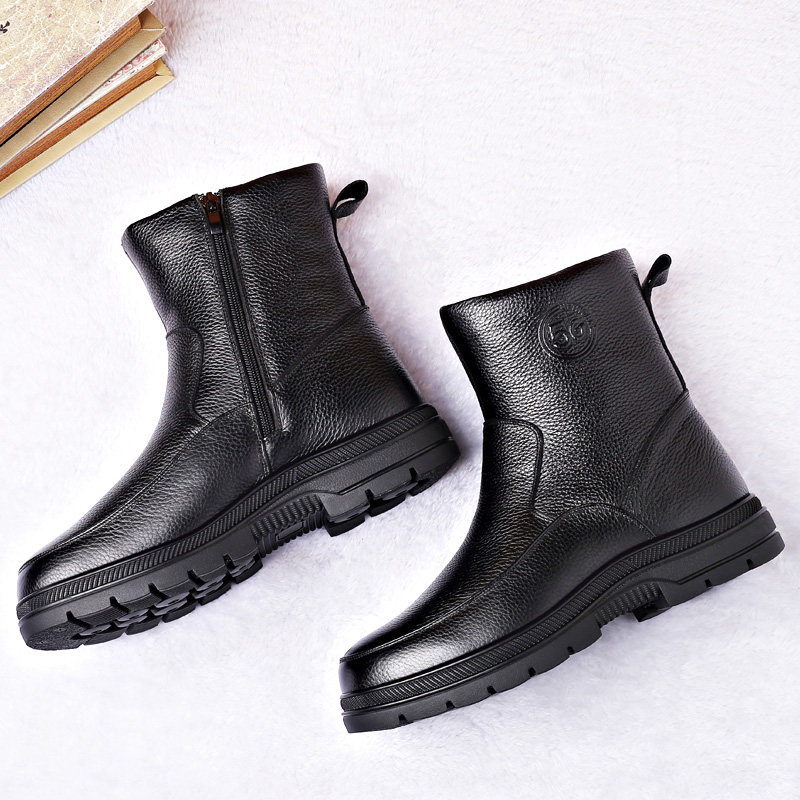 防滑雪地靴 马丁靴真皮羊毛男棉靴加厚高帮棉皮鞋 冬季 加绒保暖男士