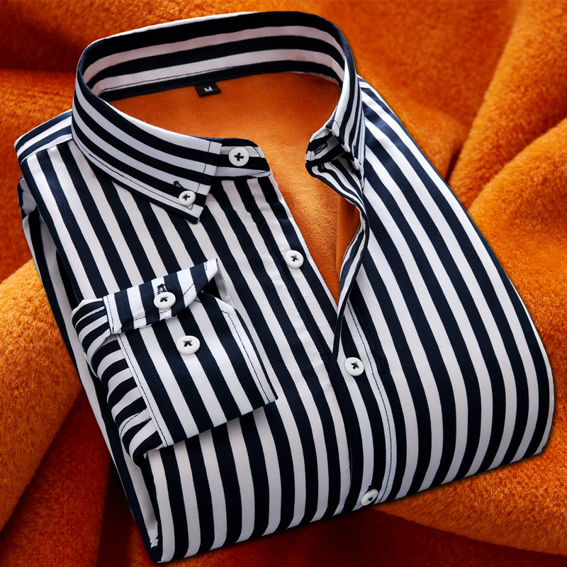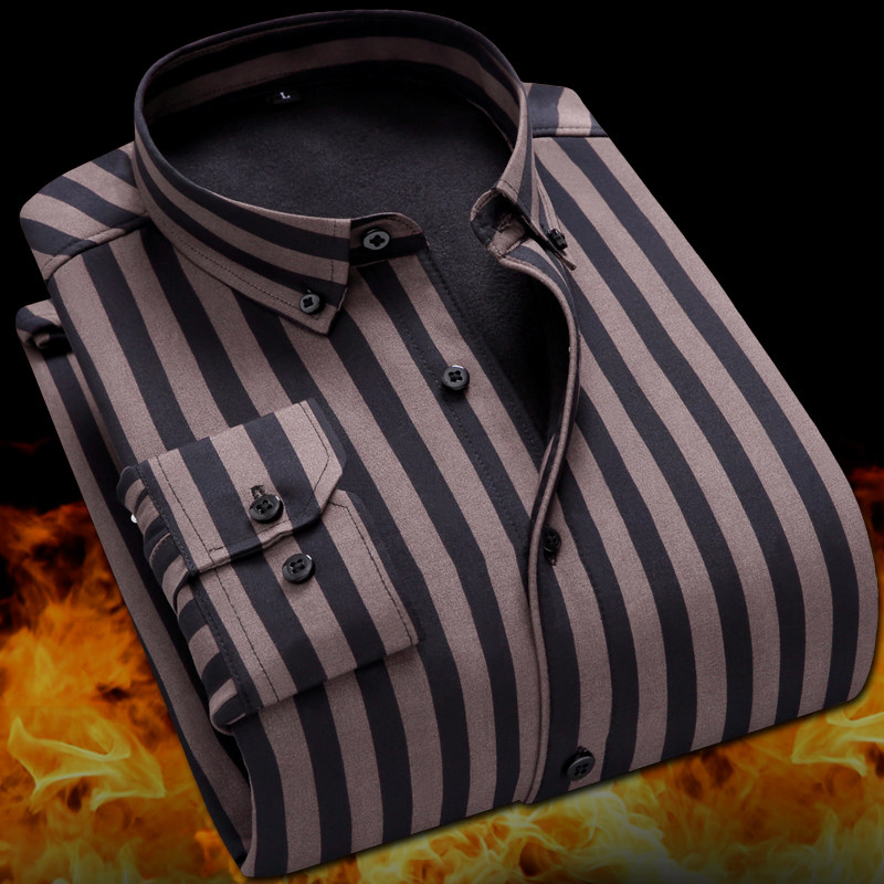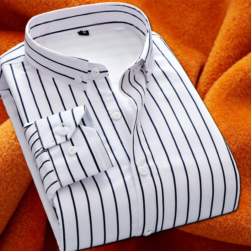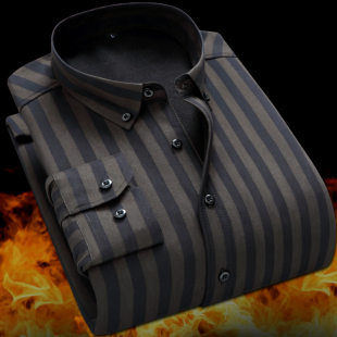 加绒加厚条纹衬衫 2019冬季 长袖 男士 保暖冬天暖和商务休闲衬衣 新款