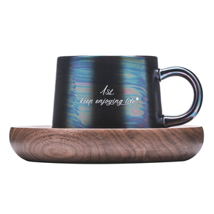 墨色复古咖啡杯碟高档精致陶瓷拿铁拉花杯子创意粗陶高级感马克杯