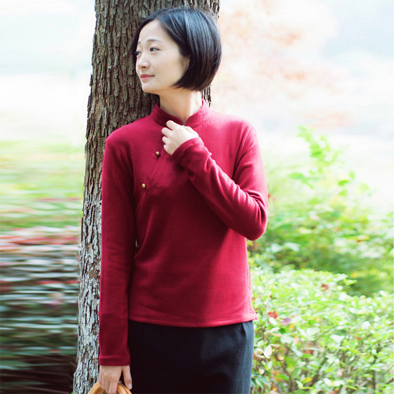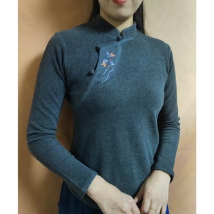 秋烟 短款 素荷原创立领中式 澳绒打底衫 上衣 多色高弹钻石绒
