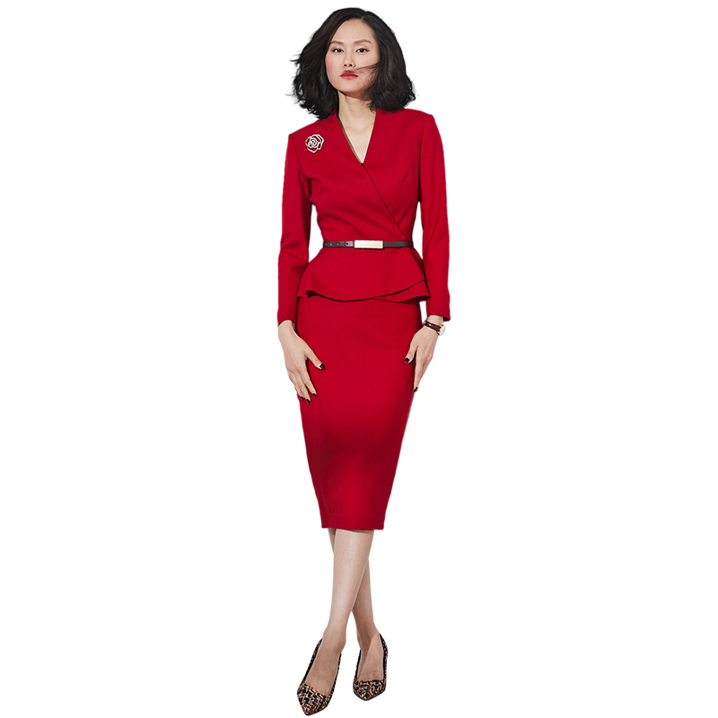 套裙女装 新款 总裁时尚 羊毛修身 女 颈袖 包臀收腰工作装 添香秋季