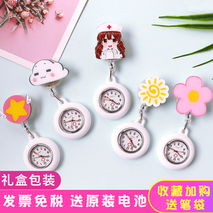卡通夜光护士表女学生护士挂表笑脸胸表可爱夹子款 医生用怀表数字