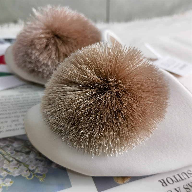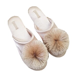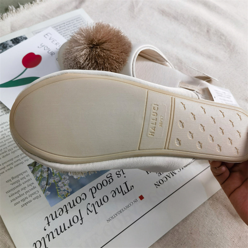 春秋丝滑缎面流苏球球舒适家居拖鞋 女 透气室内静音防滑居家拖鞋