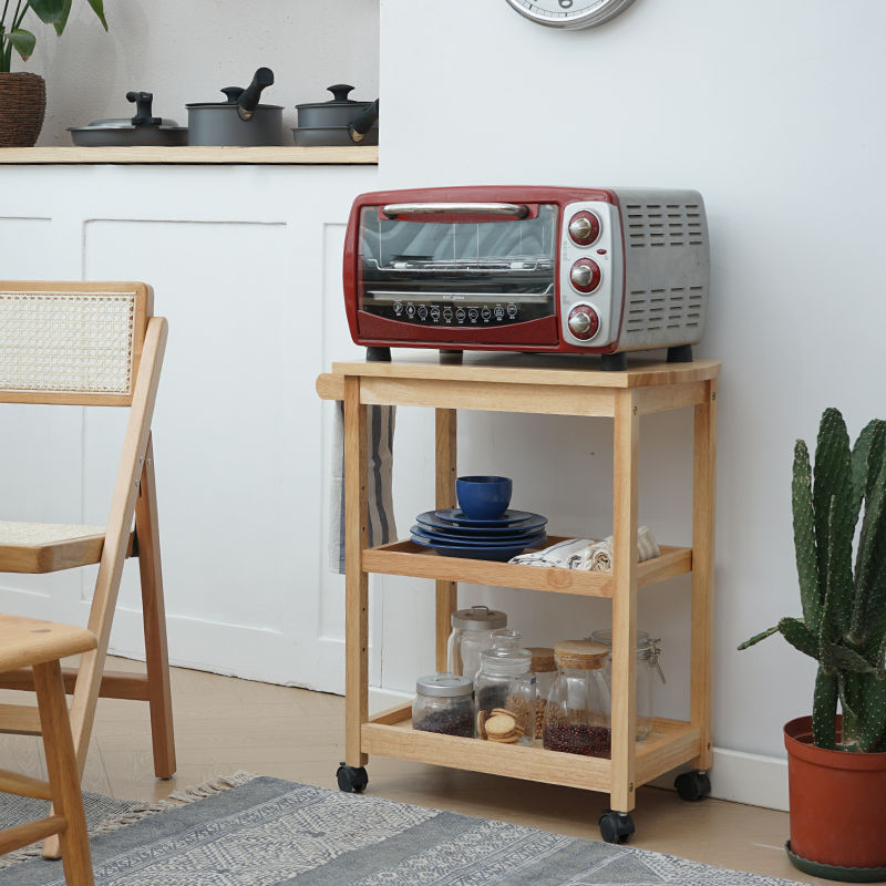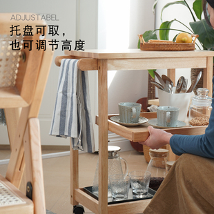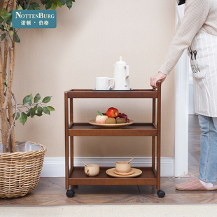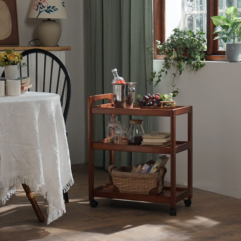 实木移动三层餐车茶水车家用厨房置物架酒水车蛋糕车餐厅小推车