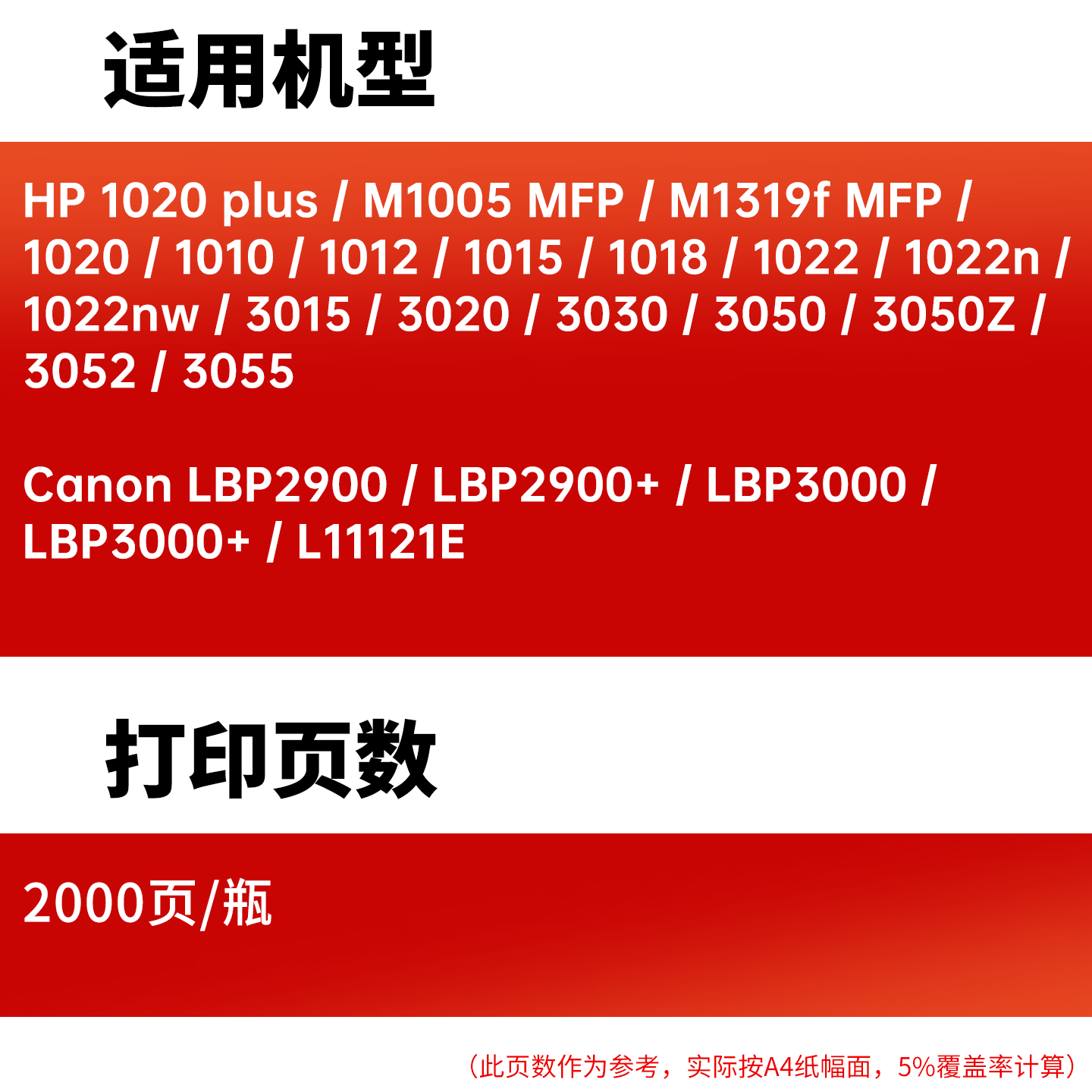 1010 1020 1022n plus打印机M1319f 3050Z 1018 M1005MFP硒鼓墨粉Q2612A 1015 适用于惠普HP12A碳粉1020 1012
