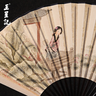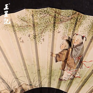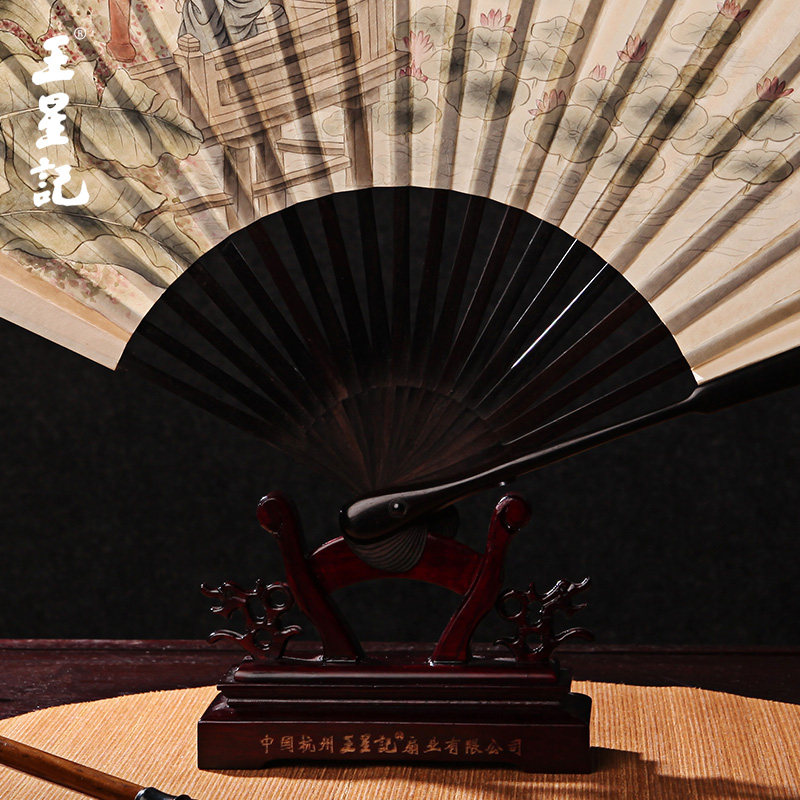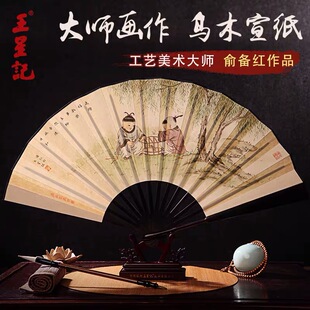 王星记扇子9寸中国风古风男扇乌木骨礼品扇折扇俞备红手绘收藏扇