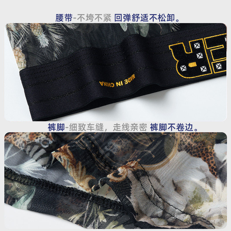 平角 透气轻薄网纱青年女三角男士 卡百利情侣内裤 性感透明冰丝夏季