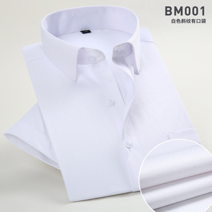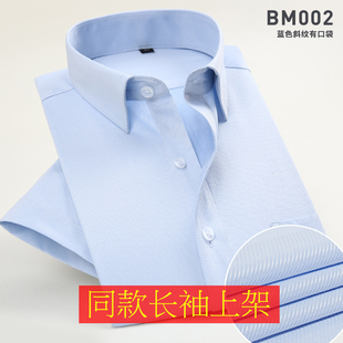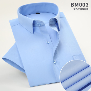 薄款 休闲白衬衣男寸衫 浅蓝色斜纹衬衫 青年商务职业工装 男短袖 夏季