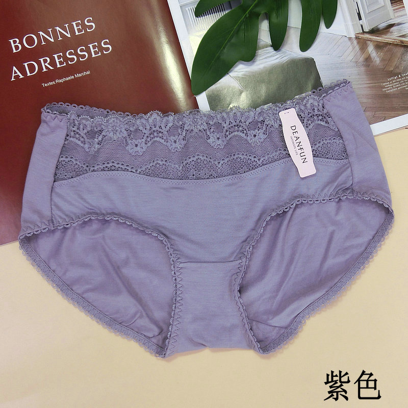 专柜蝶安芬中腰纯色莫代尔包臀柔软性感蕾丝平角女士内裤 2条 新款