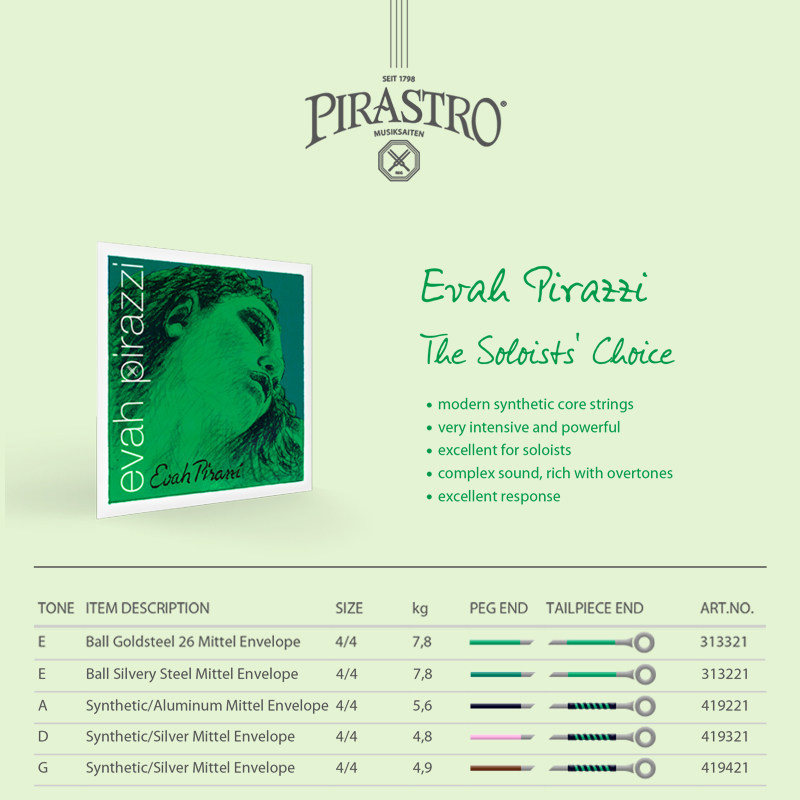 德国PIRASTRO Pirazzi绿美人小提琴弦儿童成人套弦单弦金E弦 Evah