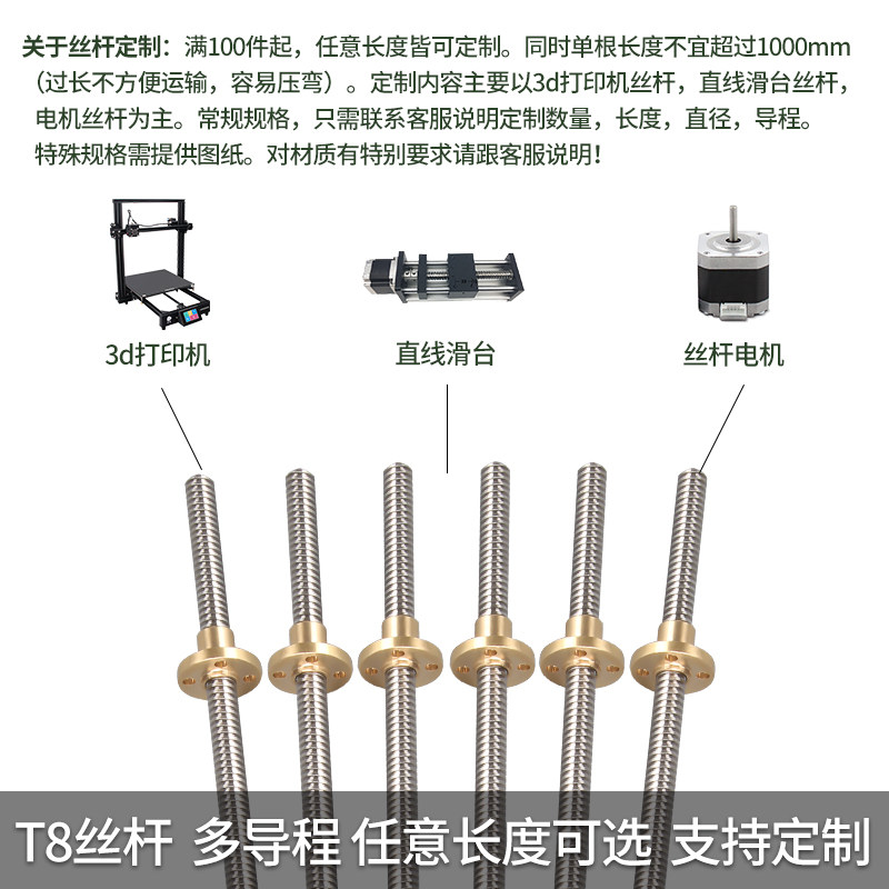 304不锈钢T8丝杆梯型牙条形螺杆丝杠步进电机3d打印机螺柱导程杆