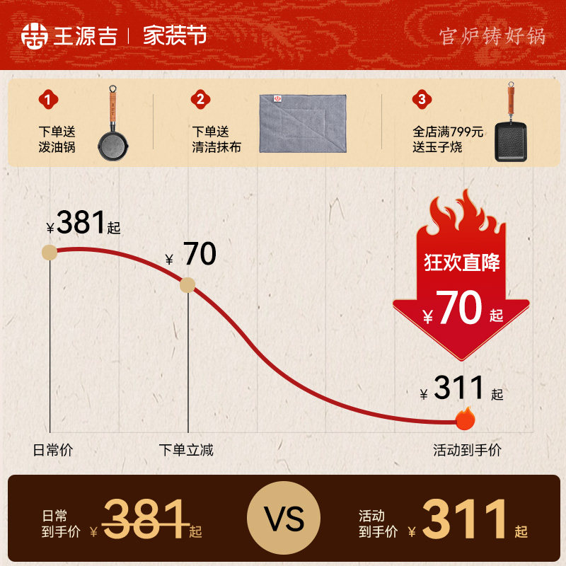王源吉铸铁锅双耳家用老式 炒菜锅不粘锅圆底无涂层苏锅王燃气专用