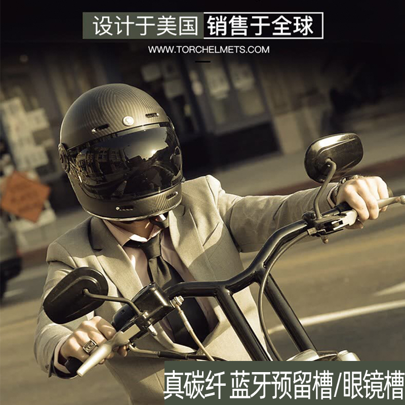 美国TORC碳纤维头盔摩托车复古全盔夏季 通用 防雾男女机车巡航四季