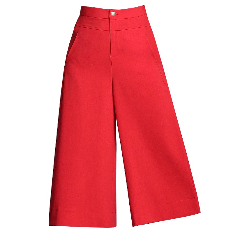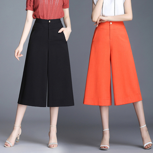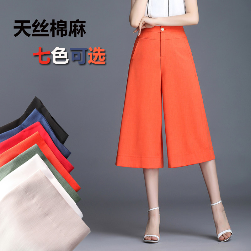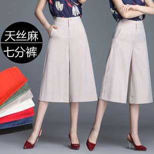 大脚裤 新款 高腰大红色垂感裙裤 薄款 天丝麻七分阔腿裤 甩裤 女夏装