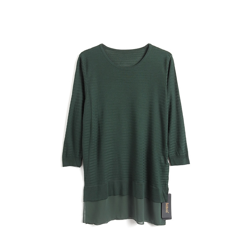 女装 OL打底针织衫 春装 纯色雪纺拼接薄款 418117510 新款 胖太太大码