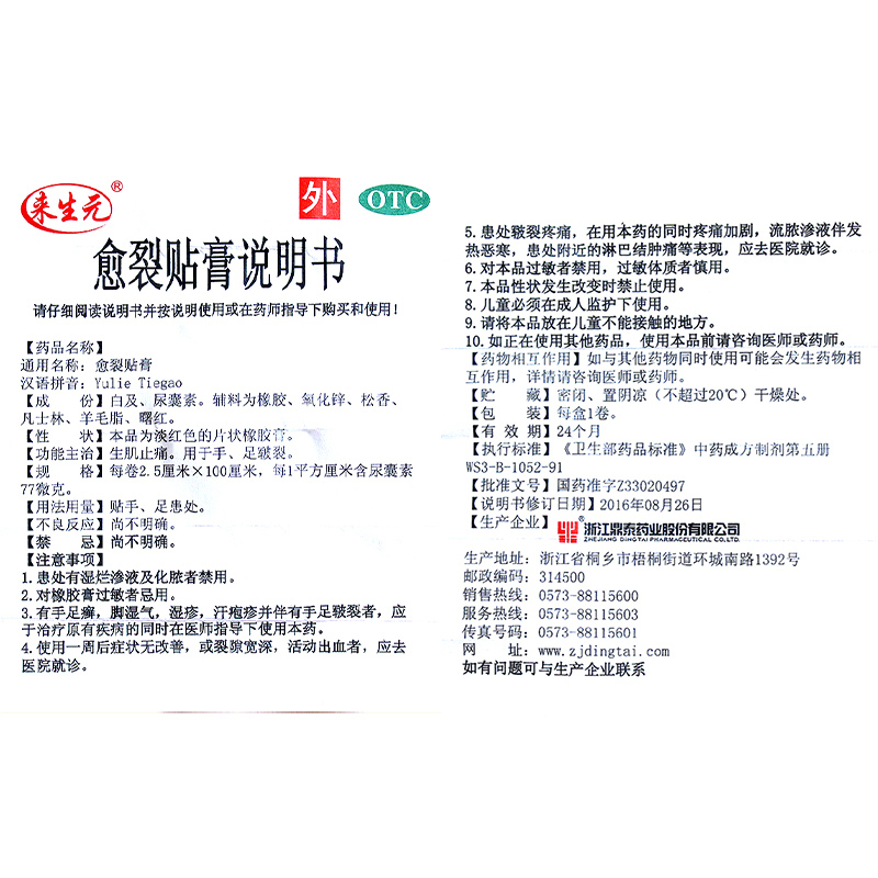 鼎泰来生元 愈裂贴膏100cm手足开裂皲裂止痛尿囊素橡胶膏凡士林
