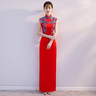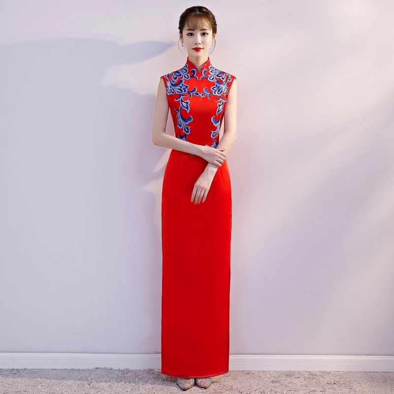 画报夫人原创新中式 玉兰花刺绣 高级刺绣过年红旗袍
