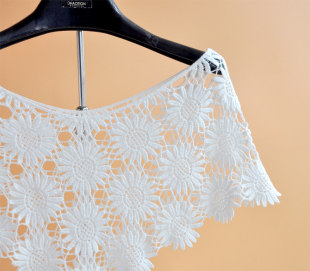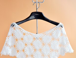 勾花空调罩衫 针织棉套头斗蓬小披肩超短款 坎肩小外套上衣 夏季 新品