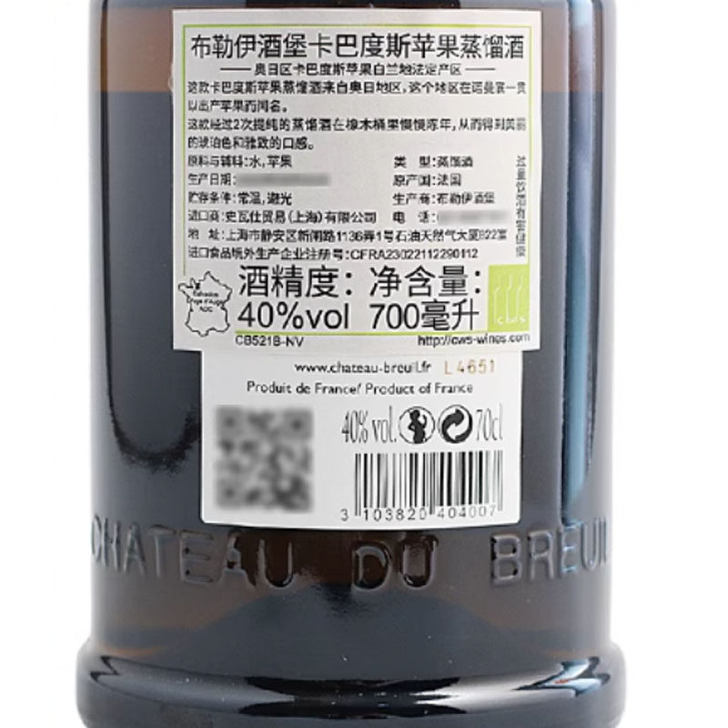 卡巴度斯 Breuil 法国布勒伊酒堡 Calvados 苹果蒸馏酒 Fine