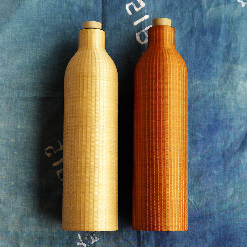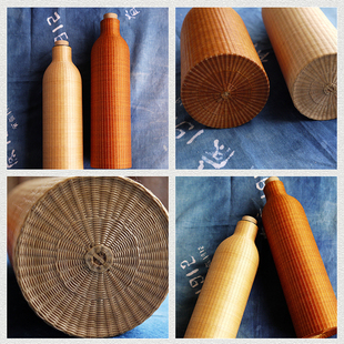 非遗手工竹丝扣瓷大容量热水瓶竹编玻璃内胆保温壶 便携茶杯