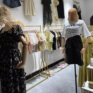 简约服装 落地摆摊陈列衣服架网红直播移动挂衣架带轮 店展示架女装