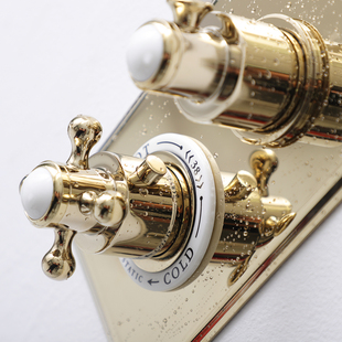花洒入墙式 恒温淋浴花洒套装 龙头全铜锆金色陶瓷把手复古嵌入暗装