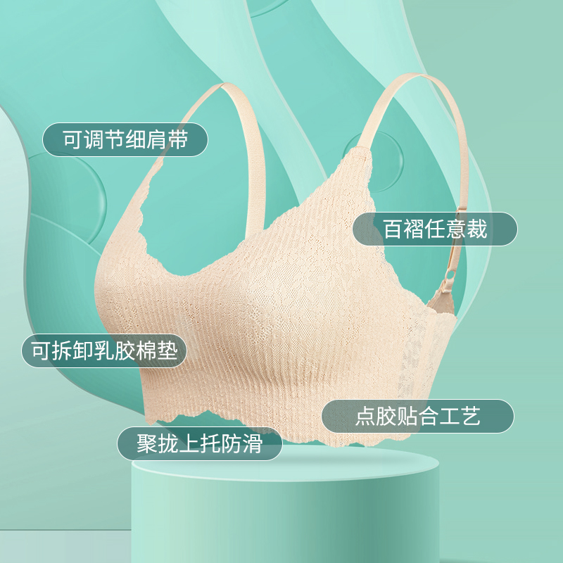 乳胶内衣小胸聚拢文胸女美背性感蕾丝无痕无钢圈吊带背心胸罩薄款