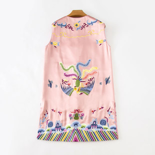 手工刺绣马甲女醋酸缎无袖 中式 背心名媛复古旗袍裙 夏季 2020新款