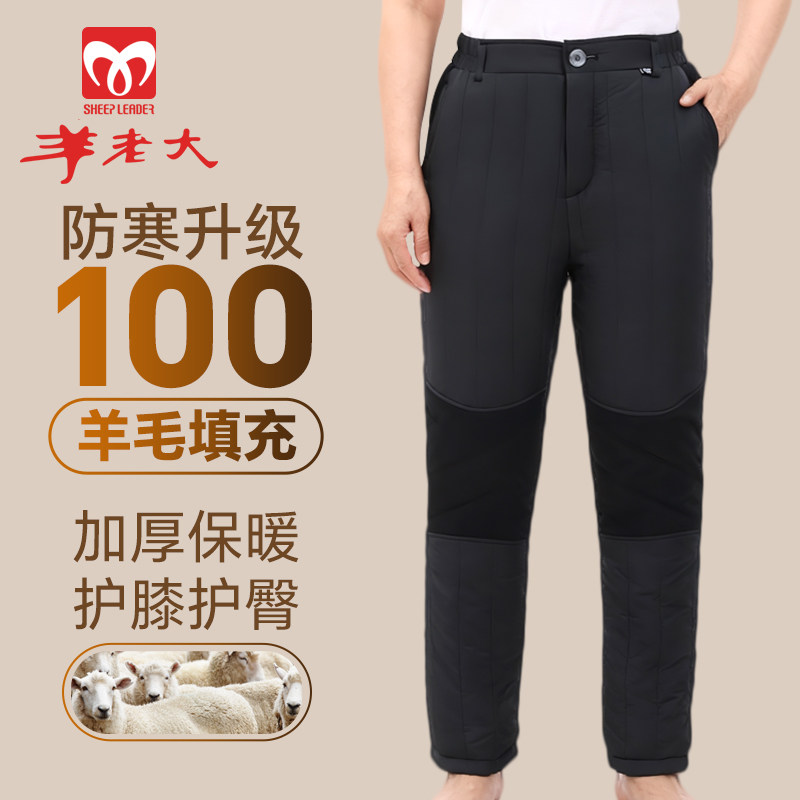 男士 高腰防风毛裤 冬季 中老年人宽松大码 男加厚 保暖裤 羊老大棉裤