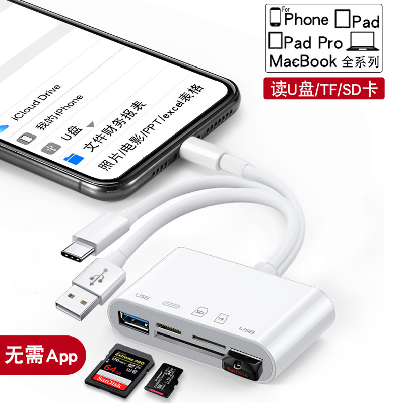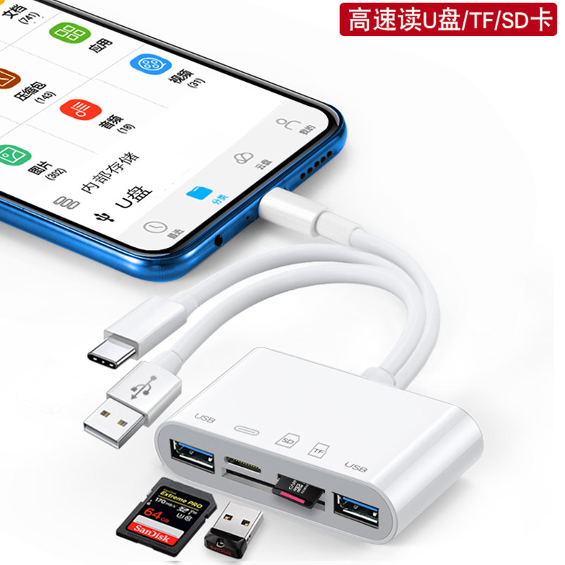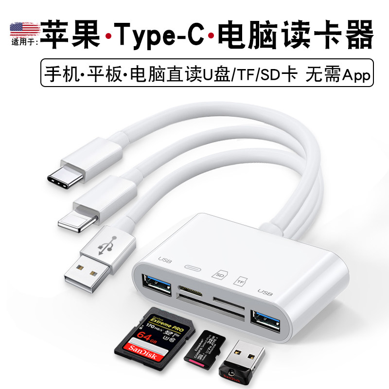 手机读卡器多合一万能苹果SD卡佳能200D富士相机ccd适用typec单反gopro行车记录仪switch电脑TF卡两用