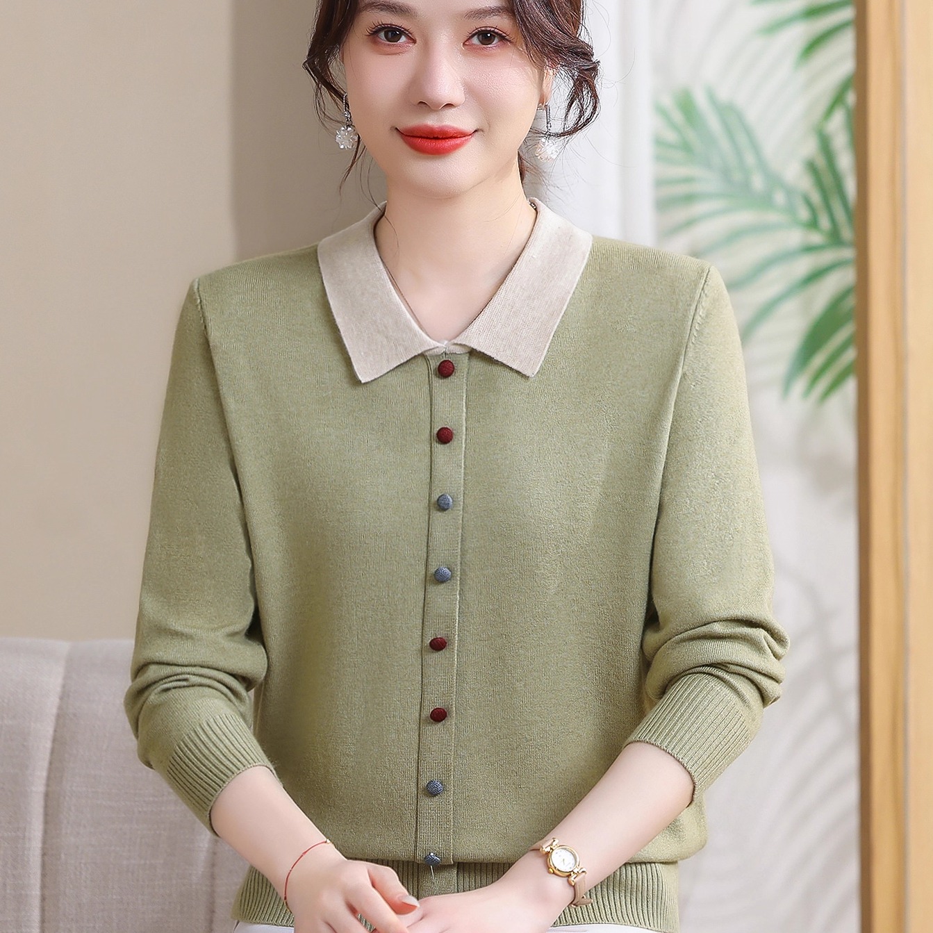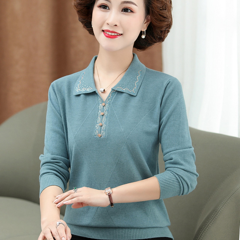 40岁50中年女翻领打底小衫 t恤针织衫 洋气上衣薄长袖 妈妈春秋新款