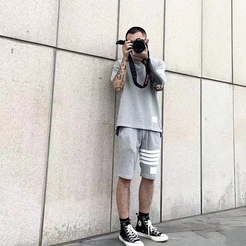 TUMA 四杠男女同款 TB套装 运动休闲套装 情侣宽松两件套 短袖 夏季